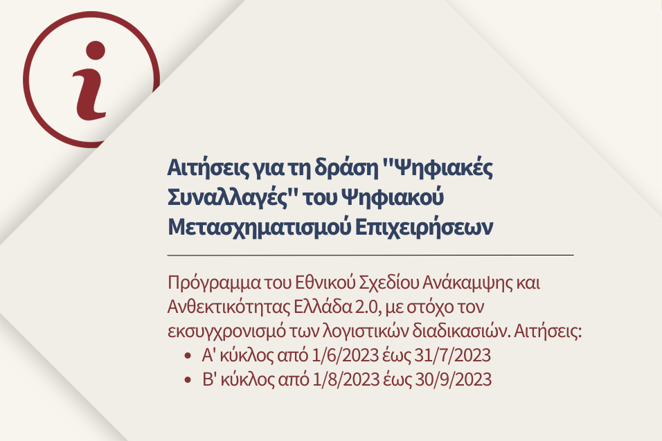 Ενημέρωση για την εφαρμογή της ψηφιακής διακίνησης και διαβίβασης δεδομένων στο myDATA